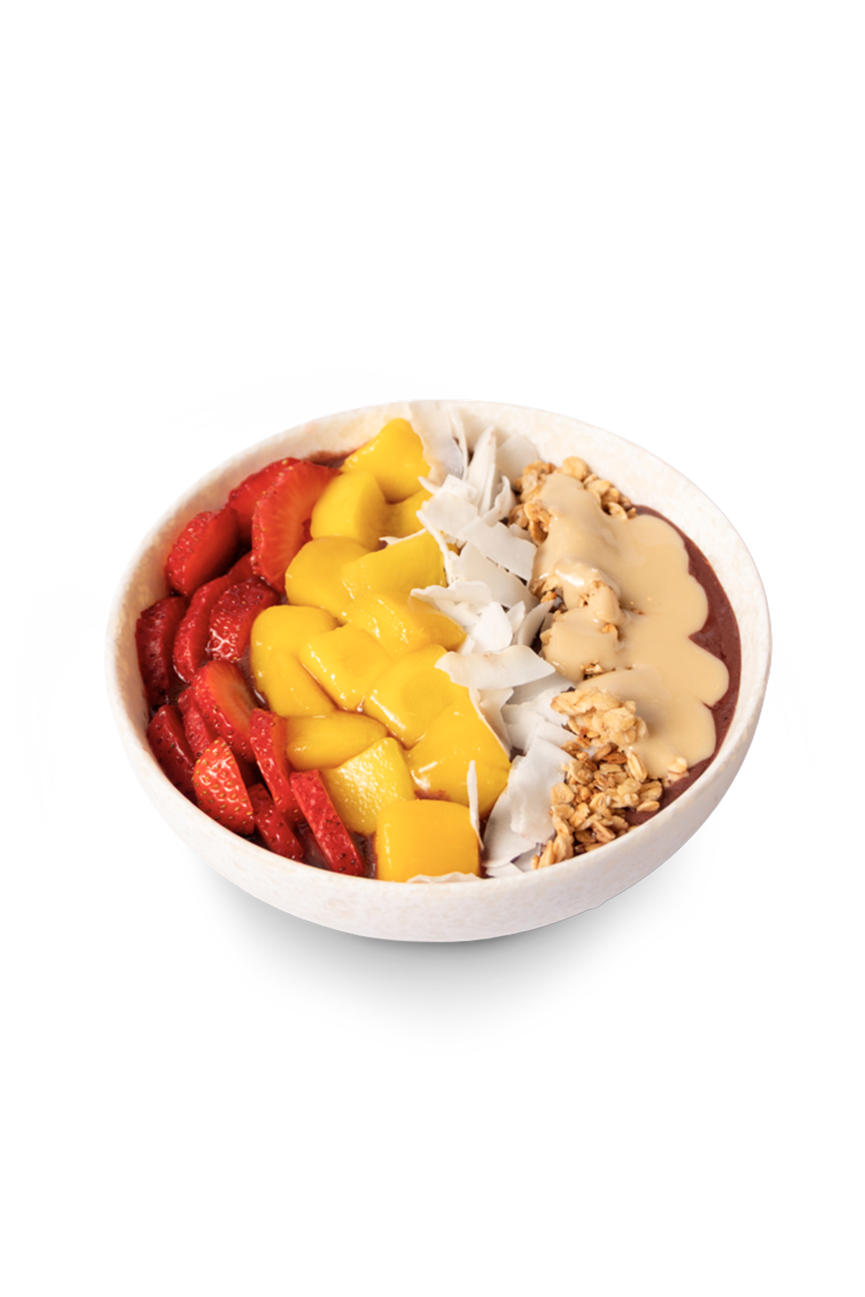 El açaí bowl más fresquito de Tasty: fresas, mango, coco rallado, granola y crema de anacardo 100% ecológica. Con nuestra base de pulpa de açaí endulzada con arándanos y guaraná.